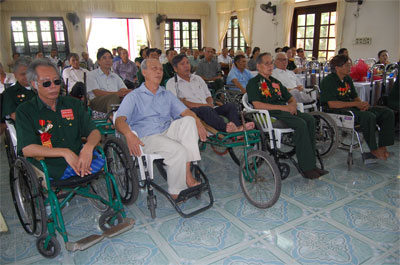 TBBB nặng ở Trung tâm Điều dưỡng thương binh Duy Tiên, Hà Nam tập trung nghe phổ biến về Chỉ thị 97. Ảnh: Thanh Ngân