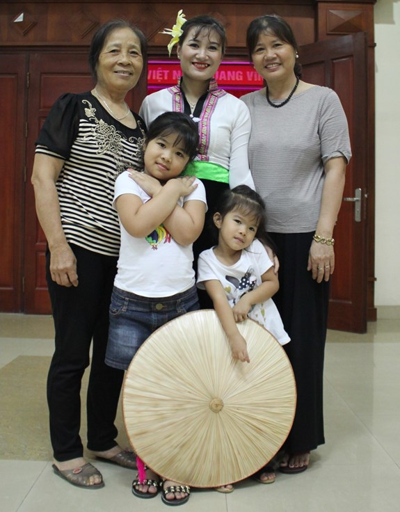Chị Trang (đứng giữa) cùng người thân sau đêm giao lưu. |