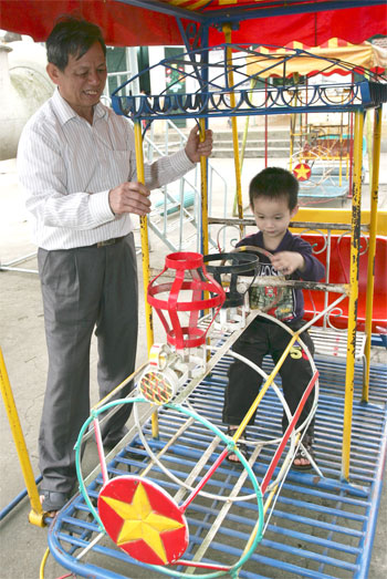 Hằng ngày, ông Lan đến trường đón cháu đi học về và dành thời gian chơi cùng cháu.