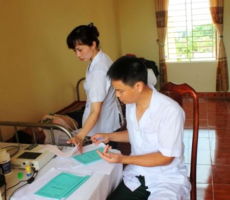 Ngay sau chương trình khai mạc, đội ngũ y sĩ , bác sĩ, dược sĩ Binh chủng Tăng-Thiết giáp đã triển khai khám, chữa bệnh và cấp thuốc miễn phí cho bà con xã Xuân Thành.
