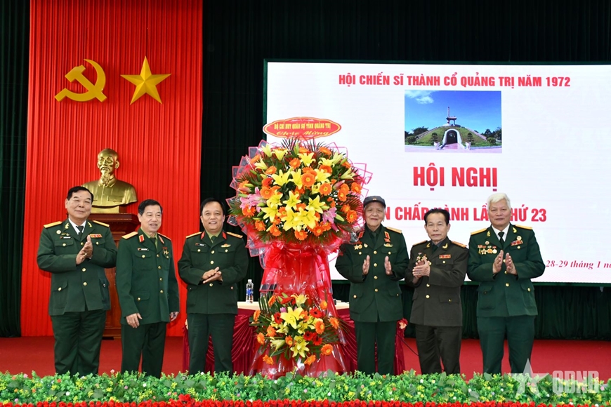 | Bộ CHQS tỉnh Quảng Trị tặng hoa chúc mừng Ban chấp hành Hội chiến sĩ Thành cổ Quảng Trị năm 1972. |