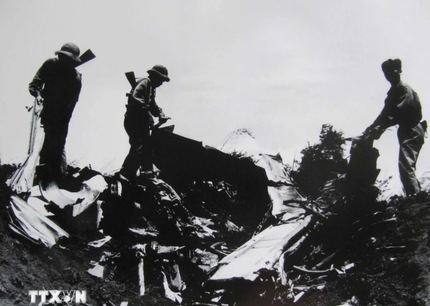 | Máy bay Mỹ bị Quân giải phóng bắn rơi trong Chiến dịch Đường 9-Nam Lào, năm 1971. Ảnh: TTXVN |