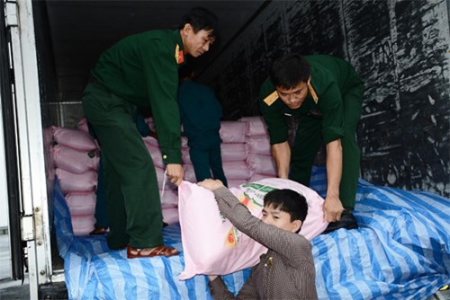 Trong những ngày qua, tại các tỉnh Hà Tĩnh, Quảng Bình, Quảng Trị, nước lũ dần rút. Ở những nơi vẫn còn bị nước cô lập, các đơn vị quân đội tổ chức chuyển hàng cứu trợ lương thực, nước uống cho bà con nhân dân.