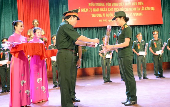 Trung tá An Thị Thu Hà nhận khen thưởng trong dịp tổng kết thực hiện Phong trào Thi đua Quyết thắng giai đoạn 2013-2018. |