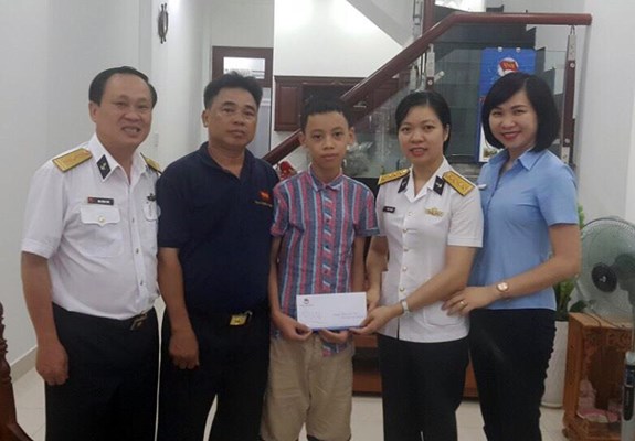 Chúng tôi có dịp cùng đoàn cán bộ Hội Phụ nữ TCT Tân cảng Sài Gòn đến thăm cháu Đặng Đình Hoàng Sơn, sinh năm 2006, con đẻ của Thiếu tá QNCN Đặng Đình Bạch, công tác tại Cảng vụ Tân cảng. Cháu Sơn bị bệnh tim bẩm sinh. Trước hoàn cảnh đó, Hội Phụ nữ TCT Tân cảng Sài Gòn trích kinh phí 10 triệu đồng từ nguồn quỹ mô hình “Những tấm lòng nhân hậu” giúp đỡ gia đình. Mặc dù số tiền không nhiều, nhưng khi đón nhận tình cảm của lãnh đạo, chỉ huy và đồng chí, đồng đội, Thiếu tá QNCN Đặng Đình Bạch rất xúc động.