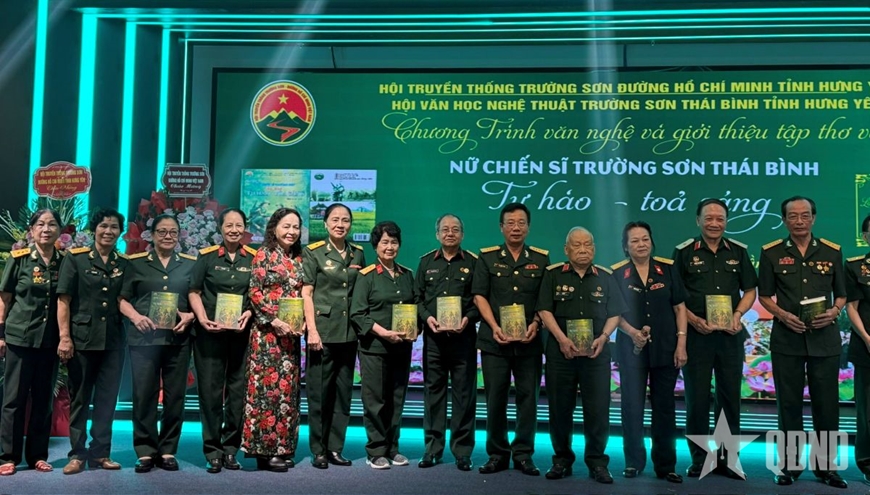 Tại buổi gặp mặt, ban tổ chức đồng thời giới thiệu, ra mắt cuốn sách “Nữ chiến sĩ Trường Sơn Thái Bình tự hào - tỏa sáng”. Cuốn sách là tập hợp 138 tác phẩm thơ, truyện ngắn, truyện ký... của 66 tác giả do Ban Chấp hành Hội lựa chọn, chỉ đạo biên tập, tổ chức xuất bản và được Nhà xuất bản Hội Nhà văn ấn hành tháng 9-2025. Với dung lượng gần 400 trang, cuốn sách “Nữ chiến sĩ Trường Sơn Thái Bình tự hào - tỏa sáng” chứa đựng niềm tự hào về quãng thời gian đẹp nhất của tuổi thanh xuân gửi lại chiến trường của các nữ chiến sĩ quê hương năm tấn. Bên cạnh đó, bạn đọc còn bắt gặp hình ảnh những nữ chiến sĩ Trường Sơn năm xưa trong cuộc sống hôm nay, dù mỗi người một hoàn cảnh nhưng luôn đoàn kết, cùng nhau tỏa sáng giữa đời thường với tấm lòng nhân hậu, sẻ chia, góp những ngọn lửa hồng làm ấm áp thêm nghĩa tình đồng đội thông qua nhiều bài viết, câu chuyện kỷ niệm xúc động.
