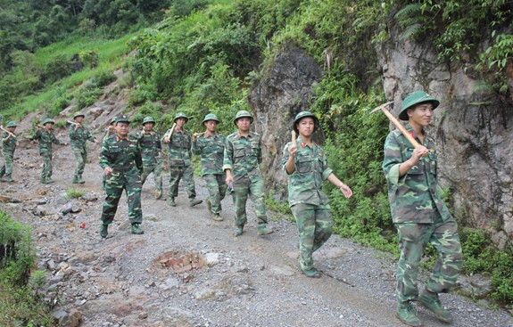 Cán bộ, chiến sĩ Trung đoàn 754, Bộ CHQS tỉnh Sơn La hành quân vào địa bàn xã Loóng Luông. |