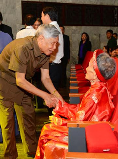 | Nguyên Tổng bí thư Lê Khả Phiêu ân cần thăm hỏi, chúc Mẹ mạnh khỏe, sống lâu. |
