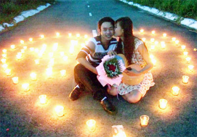 Quân và Nương trong ánh nến hạnh phúc ở lần sinh nhật thứ 22 của Quân.
