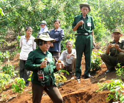 Dùng máy dò tìm hài cốt liệt sĩ trên đồi Lồ Ô.