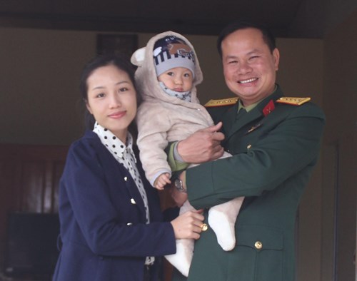 Đại úy Đặng Ngọc Thành cùng vợ con hạnh phúc ở đảo Thanh Lân. |