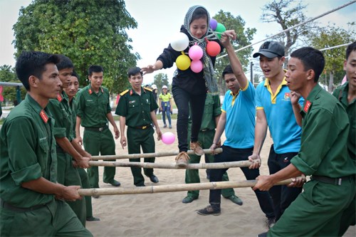 Trung đoàn 1 (Sư đoàn 330) cùng thanh niên huyện biên giới Tịnh Biên, tỉnh An Giang tổ chức các trò chơi vui nhộn.