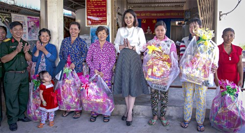 Hoa hậu Đại dương Đặng Thu Thảo tham gia tặng quà người nghèo trong Tết quân-dân của tỉnh An Giang.