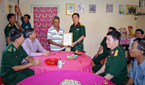 Đại diện Bộ CHQS tỉnh Kiên Giang trao nhà đồng đội tặng gia đình chính sách ở huyện biên giới Giang Thành, tỉnh Kiên Giang.