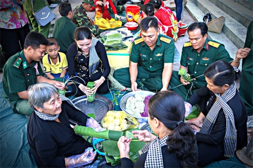 Quân-dân xã Lâm Tân, huyện Thạnh Trị, tỉnh Sóc Trăng cùng tham dự Hội thi gói bánh tét ngày Tết.