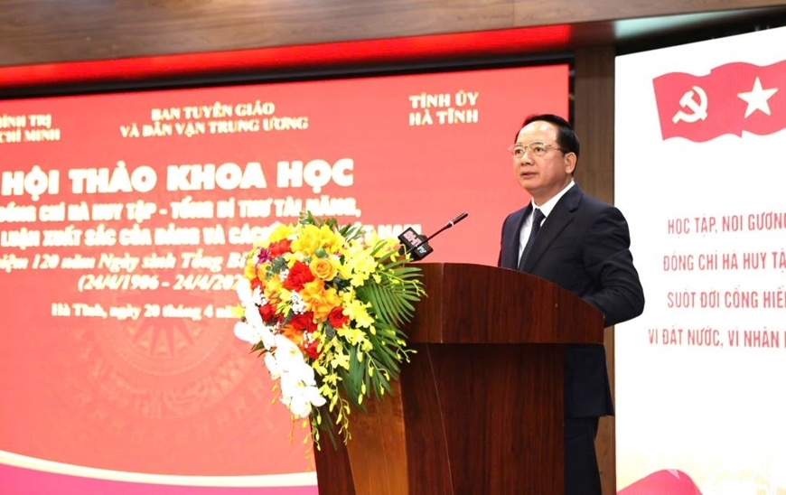 Dự và chủ trì hội thảo có các đồng chí: Trịnh Văn Quyết, Ủy viên Bộ Chính trị, Bí thư Trung ương Đảng, Trưởng ban Tuyên giáo và Dân vận Trung ương; Đoàn Minh Huấn, Ủy viên Bộ Chính trị, Giám đốc Học viện Chính trị quốc gia Hồ Chí Minh; Nguyễn Duy Lâm, Ủy viên Trung ương Đảng, Bí thư Tỉnh ủy Hà Tĩnh; Đinh Thị Mai, Phó trưởng ban Tuyên giáo và Dân vận Trung ương; Nguyễn Mạnh Hùng, Phó giám đốc Học viện Chính trị quốc gia Hồ Chí Minh, Phó chủ tịch, Tổng thư ký Hội đồng Lý luận Trung ương.