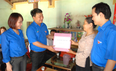 Tuổi trẻ thủ đô Hà Nội thăm, tặng quà gia đình quân nhân đang làm nhiệm vụ tại Trường Sa và Nhà giàn DK1 ở xã Thiệu Tân, huyện Thiệu Hóa. Ảnh: Trần Minh
