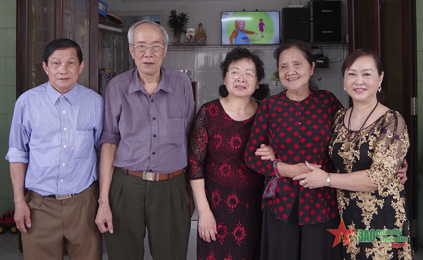 | Bà Nguyễn Thị Hồng Vân (thứ hai, từ phải sang) trong lần gặp gỡ đồng đội năm xưa. |