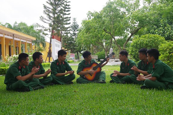 Cán bộ, chiến sĩ Lữ đoàn Phòng không 673 vui văn nghệ trong giờ nghỉ. Ảnh: Xuân Tiến.