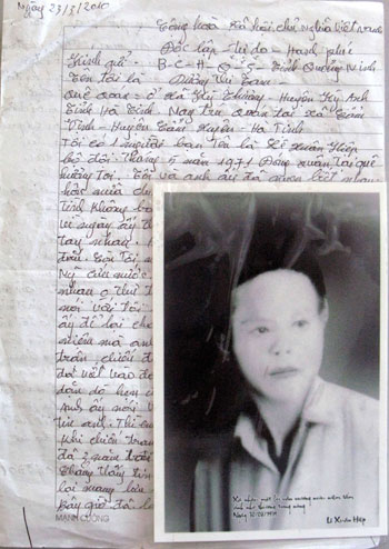 | Bức thư tay và tấm ảnh chân dung liệt sĩ Hiệp mà bà Tam gửi ra Quảng Ninh đã mở ra cơ hội tìm được mộ của liệt sĩ. |