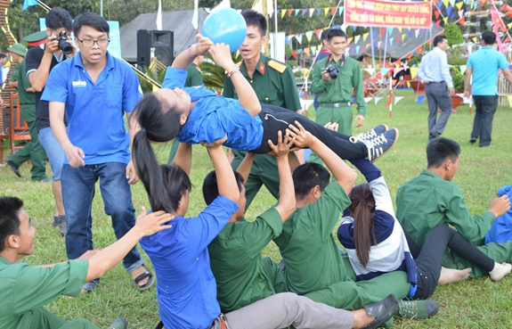 Tại Đại đội 7, xen kẽ những tiết mục văn nghệ, trò chơi dân gian, Thiếu úy Cao Văn Khương (Chính trị viên phó Đại đội 7) khéo léo nêu các câu hỏi về tình huống ứng xử của chiến sĩ về điều lệnh, an toàn giao thông… Không khí vui tươi, hấp dẫn, gay cấn trong từng tình huống.