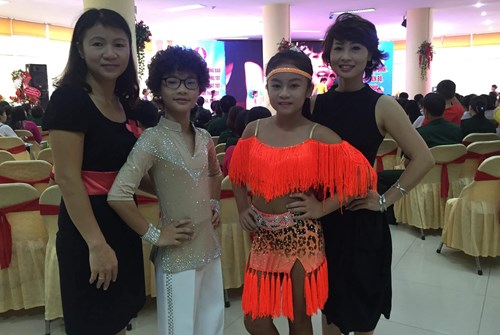 Trải lòng cùng chúng tôi, chị kể: Ngày nhỏ, Hà My tỏ ra nhút nhát hơn các bạn cùng trang lứa, ít cởi mở, sợ trò chuyện với mọi người xung quanh. Lo lắng cho sự phát triển của con và sau khi được nhiều người tư vấn, vợ chồng chị quyết định cho con tham gia lớp học khiêu vũ thể thao tại Smart Dance Center-Hà Nội, theo học lớp do kiện tướng dancesport Thu Hương dạy, lúc đó Hà My được 6 tuổi. Ở môi trường mới đầy sôi động, cùng nhiều bạn nhỏ đồng trang lứa, vợ chồng chị muốn giúp con phần nào tự tin và thân thiện, cởi mở với bạn bè hơn. Một thời gian dài, nhờ sự kiên trì của gia đình, sự tận tình hướng dẫn của cô giáo, dần dần Hà My trở nên năng động, tự tin hơn rất nhiều. “Con mạnh dạn xung phong phát biểu bài trên lớp, tự tin tham gia các hoạt động văn nghệ của nhà trường, hoạt bát hơn trong giao tiếp với mọi người…”-chị Giang tự hào chia sẻ. Nhìn sự năng động, tự tin của con, vợ chồng chị nhận thấy mình thật đúng khi quyết định cho con theo học bộ môn năng khiếu này. Và cũng từ đam mê khiêu vũ thể thao, Hà My cũng trở nên yêu thích các môn học trên lớp và tự giác, tích cực trong học tập hơn. 5 năm liền, Hà My đều đạt học sinh giỏi toàn diện cấp trường.
