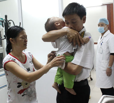 Đã vài lần đưa con đi làm xét nghiệm tại các bệnh viện, nên chị Hằng hiểu rõ hơn ai hết sự đau đớn của con. Có lẽ vì thế nên lần này chị không dám nhìn con đau đớn nữa, mà đưa con cho chồng bế rồi thút thít chạy ra ngoài. Cháu Hoài tuy đã được tiêm thuốc gây tê song vẫn gồng người khóc ngằn ngặn, khi các thầy thuốc làm xét nghiệm. Anh Hoàng vừa giữ chặt con, vừa đỏ hoe khóe mắt. Nghe tiếng khóc của con, chị Hằng đứng nép sau cửa, ngó vào nhìn con gái. Bờ vai gầy guộc của người mẹ cứ rung lên từng chặp theo nhịp nấc…