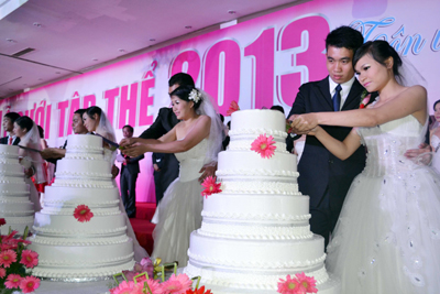 Sáng 2-9, Trung tâm hỗ trợ thanh niên công nhân TP Hồ Chí Minh tổ chức Lễ cưới tập thể với chủ đề “Tôn vinh nét đẹp văn hóa Việt” cho 100 đôi công nhân viên, thanh niên công nhân, người lao động đang làm việc tại khu công nghiệp, khu chế xuất trên địa bàn thành phố và khu vực lân cận.