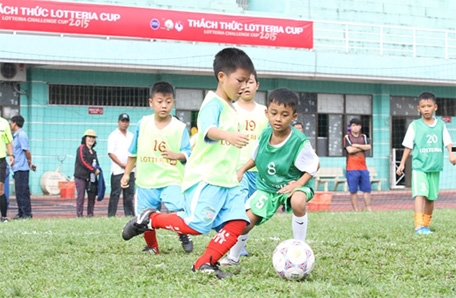 QĐND Online - Trong hai ngày 5 và 6-9, tại Trung tâm Thể dục Thể thao Hoa Lư, 16 đội bóng thiếu nhi tại TP Hồ Chí Minh đã cùng tham gia vòng loại trong khuôn khổ “Thách thức Lotteria Cup 2015”. Đây là giải bóng đá thiếu nhi toàn quốc thường niên do Công ty Lotteria Việt Nam tổ chức dưới sự bảo trợ chính thức từ Tổng cục Thể dục Thể thao (Bộ Văn hóa Thể thao & Du lịch) và Liên đoàn Bóng đá Việt Nam.