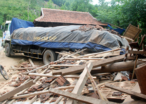 Còn tài xế xe tải Đinh Kim Giang tường thuật, ôtô chở 10 tấn xi măng lên trung tâm huyện Sơn Tây, dừng ở đầu dốc để bơm nước vào bồn làm mát máy. "Khi đỗ, hai phụ xe xuống trước để lấy đá kê bánh sau xe, sau đó tôi mở cửa xuống kiểm tra thì bất ngờ xe tải tuột dốc nhanh. Tôi hoảng quá nhảy lên buồng lái phía trước nhưng không kịp nên đuôi xe lao vào nhà”, lái xe kể.