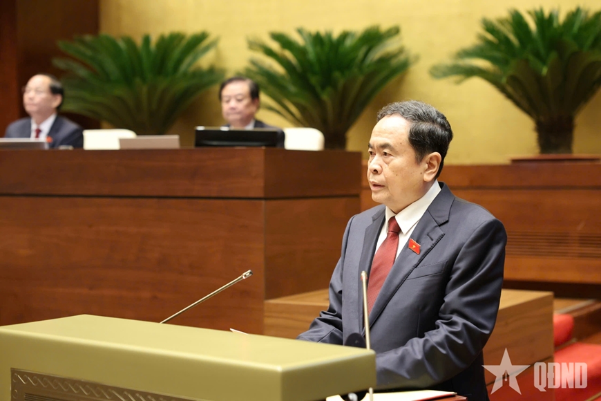Chủ tịch Quốc hội Trần Thanh Mẫn trình bày báo cáo trước Quốc hội.