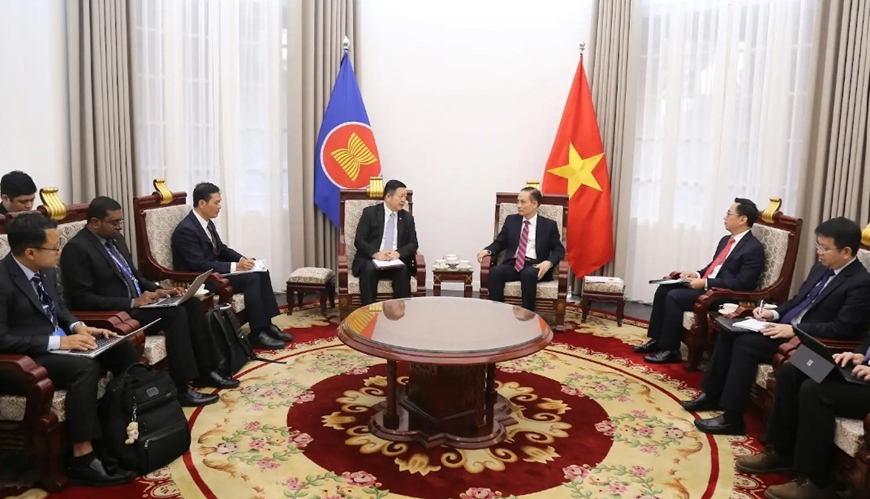 Tại buổi tiếp, Bộ trưởng Lê Hoài Trung đánh giá cao vai trò tích cực và những đóng góp quan trọng của Tổng thư ký ASEAN Kao Kim Hourn và Ban thư ký ASEAN đối với công việc chung của ASEAN, cũng như sự hỗ trợ và hợp tác mà Tổng Thư ký và Ban Thư ký dành cho Việt Nam thời gian qua.