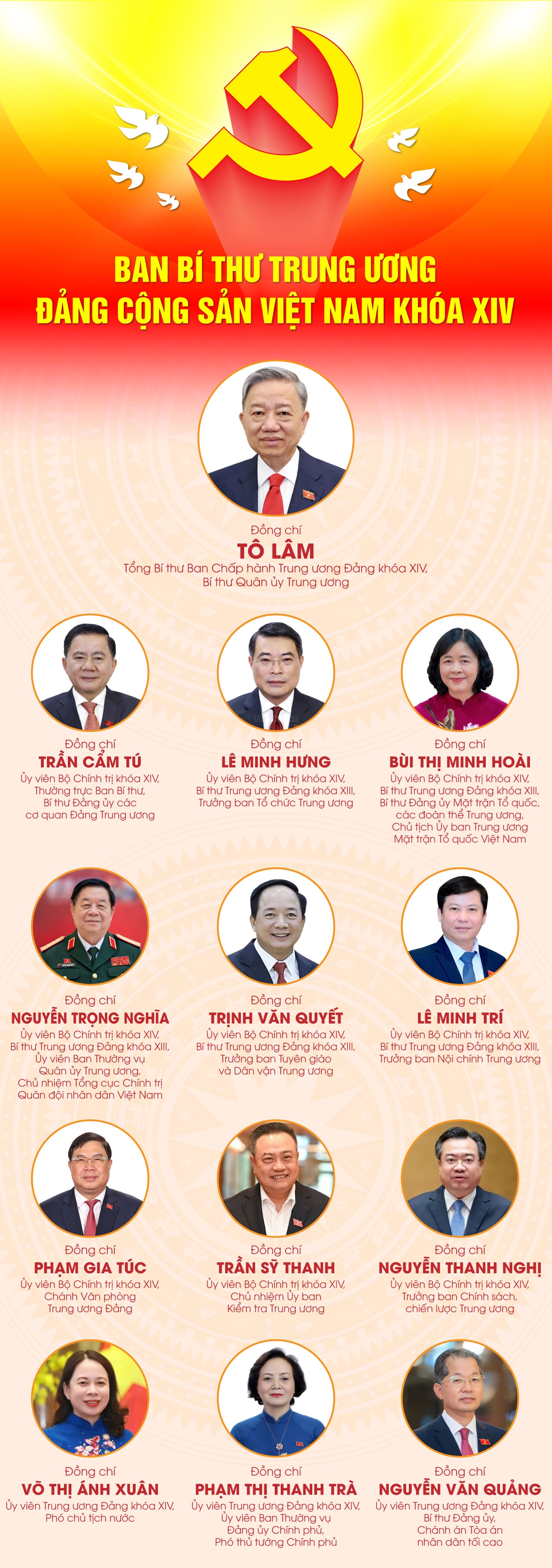 Ngày 30-1, thay mặt Bộ Chính trị, Tổng Bí thư Tô Lâm ký ban hành Quyết định phân công Ủy viên Bộ Chính trị khóa XIV tham gia Ban Bí thư khóa XIV (Quyết định số 05-QĐNS/TW).