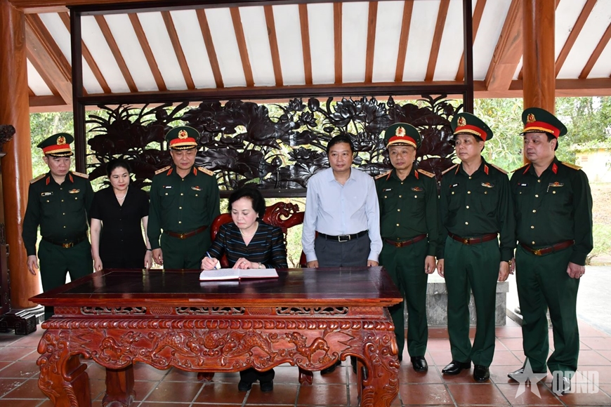 | Phó thủ tướng Phạm Thị Thanh Trà ghi sổ lưu niệm tại Nghĩa trang Liệt sĩ quốc gia Trường Sơn. |