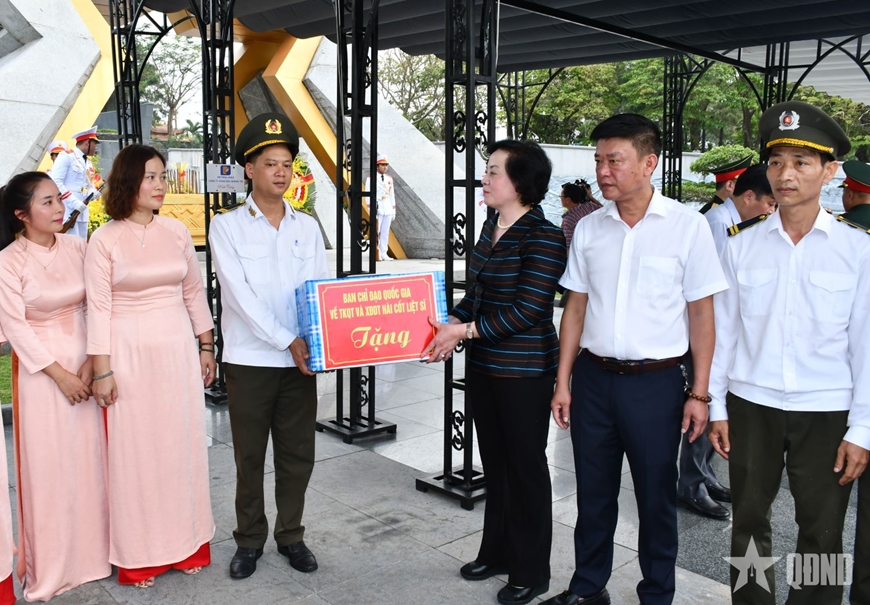 Tiếp tục chương trình làm việc tại Quảng Trị, chiều 1-4, đoàn công tác Ban Chỉ đạo quốc gia về tìm kiếm, quy tập và xác định danh tính hài cốt liệt sĩ do đồng chí Phạm Thị Thanh Trà, Bí thư Trung ương Đảng, Phó thủ tướng Chính phủ, Trưởng ban Chỉ đạo quốc gia về tìm kiếm, quy tập và xác định danh tính hài cốt liệt sĩ làm trưởng đoàn đã đến dâng hoa, dâng hương, tri ân các Anh hùng liệt sĩ tại Nghĩa trang Liệt sĩ quốc gia Trường Sơn và Nghĩa trang Liệt sĩ quốc gia Đường 9.