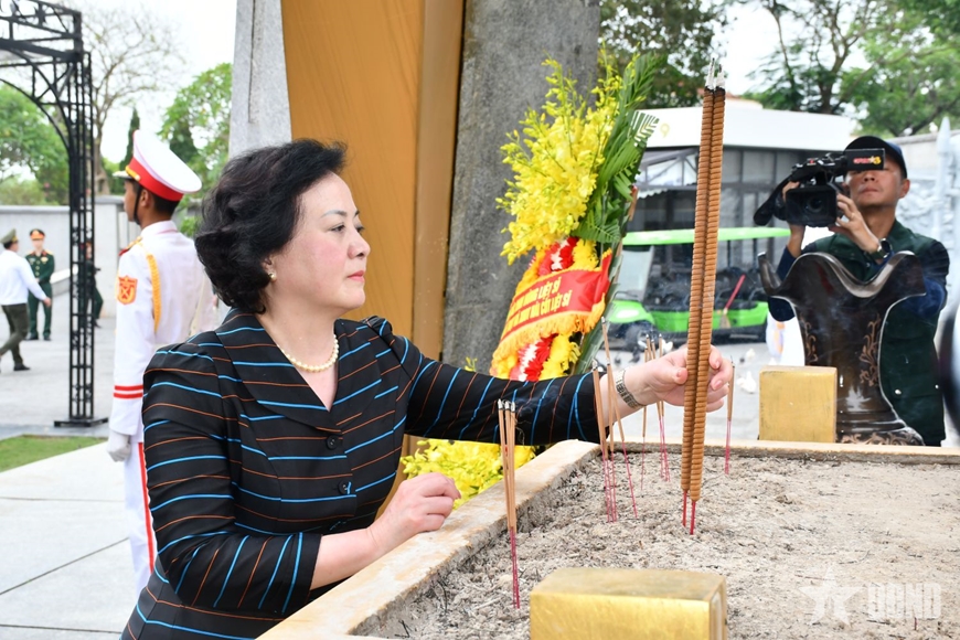 Phó thủ tướng Phạm Thị Thanh Trà dâng hương tri ân các Anh hùng liệt sĩ.