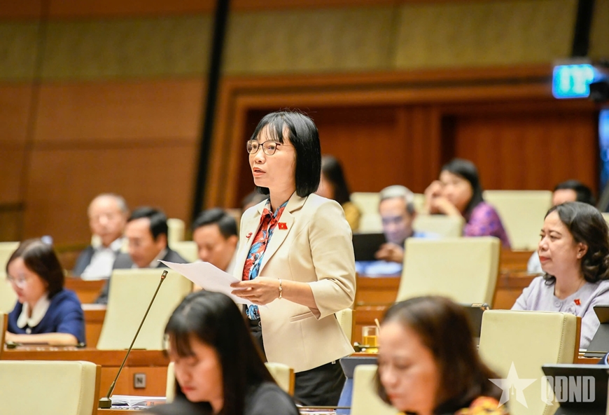 | Đại biểu Nguyễn Thị Việt Nga (đoàn Hải Phòng) thảo luận tại hội trường sáng 14-11. Ảnh: TRỌNG HẢI |
