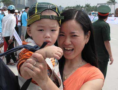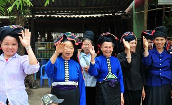 | Bà con các dân tộc đón chào đoàn đua. Ảnh: Xuân Gụ |