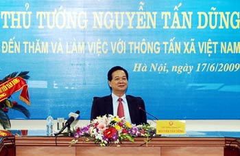 Tại buổi thăm, làm việc với Thông tấn xã Việt Nam (TTXVN), nhân dịp 84 năm Ngày Báo chí Cách mạng Việt Nam, sáng 17-6, Thủ tướng Nguyễn Tấn Dũng nhấn mạnh, TTXVN cần nhanh nhạy, chủ động, cung cấp kịp thời hơn nữa thông tin chính thống cho các tầng lớp nhân dân.