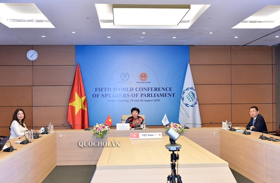 Chủ tịch Quốc hội Nguyễn Thị Kim Ngân tham dự Hội nghị trực tuyến Hội nghị các Chủ tịch Quốc hội thế giới lần thứ 5. |