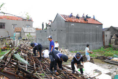 | Cán bộ chiến sỹ Đoàn đặc công 126 giúp dân khắc phục hậu quả trận lốc xoáy |
