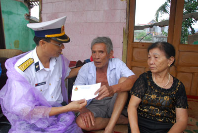 | Vùng 1 Hải quân tặng các gia đình bị nạn 10 triệu đồng |