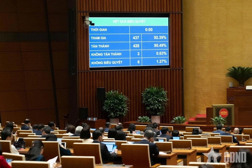 | Quốc hội biểu quyết thông qua Nghị quyết của Quốc hội quy định một số cơ chế, chính sách tháo gỡ khó khăn, vướng mắc trong tổ chức thi hành Luật Đất đai. |