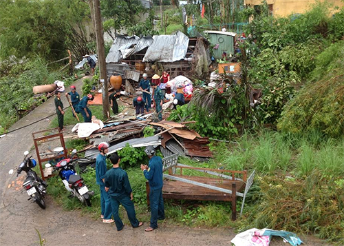 - Ngay sau khi lốc xoáy đi qua, lãnh đạo thị trấn cùng cán bộ, công nhân viên đã tổ chức lực lượng xuống địa bàn tổ chức thăm hỏi, động viên người dân, giúp dọn dẹp nhà cửa, ổn định cuốc sống.