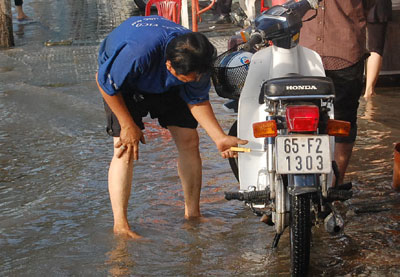 Nước ngập khiến cho dịch vụ sửa xe nở rộ
