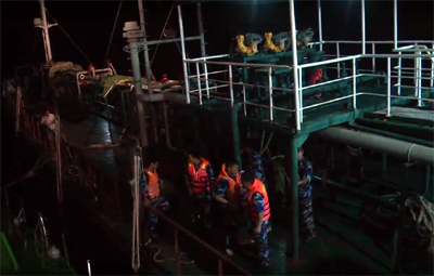 Lực lượng Cảnh sát biển tiếp cận tàu vi phạm.