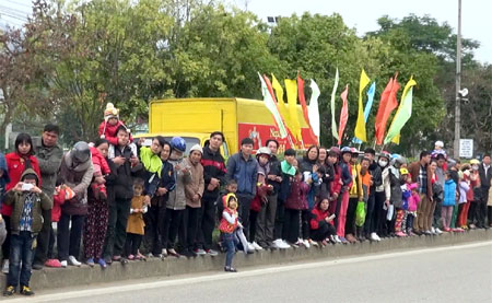 | Rất đông người dân thị xã Bắc Kạn đến cổ vũ cho đoàn đua. |