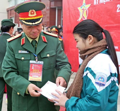 Thiếu tướng Phạm Văn Huấn, Bí thư Đảng ủy, Tổng biên tập Báo Quân đội nhân dân, Trưởng ban Tổ chức cuộc đua trao học bổng (trị giá 5 triệu đồng/suất) tặng con cán bộ, chiến sĩ lực lượng vũ trang nhân dân tỉnh Bắc Kạn.