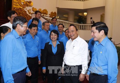 Phát biểu tại buổi làm việc, Thủ tướng Nguyễn Xuân Phúc nhấn mạnh, trong thành tích chung của kinh tế-xã hội đất nước, có sự đóng góp to lớn của giai cấp công nhân, người lao động và Tổng Liên đoàn Lao động Việt Nam. Thời gian qua, các cấp Công đoàn Việt Nam đã đạt được nhiều thành tích quan trọng, triển khai nhiều thiết chế công đoàn hiệu quả; triển khai nhiều hoạt động ý nghĩa trong đó có các cuộc đối thoại của Thủ tướng với công nhân lao động, mang lại nhiều ý nghĩa xã hội; động viên, khuyến khích người lao động thi đua lao động sản xuất, tạo sự lan tỏa tốt trong xã hội. Đời sống của người lao động được nâng lên, số vụ đình công, lãn công giảm, nhiều kiến nghị của người lao động từ Trung ương đến địa phương đã được tiếp thu, giải quyết; khẳng định thêm vai trò của các cấp Công đoàn và Tổng Liên đoàn Lao động Việt Nam.