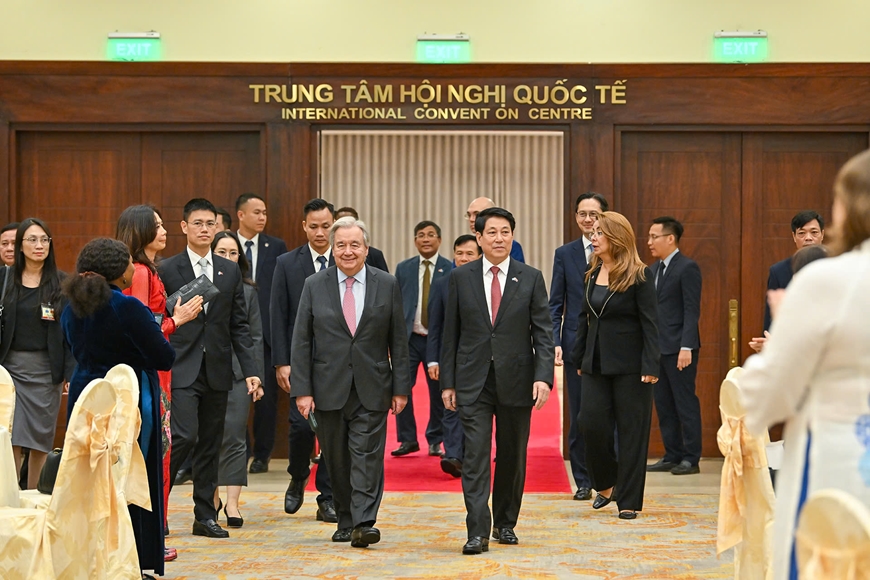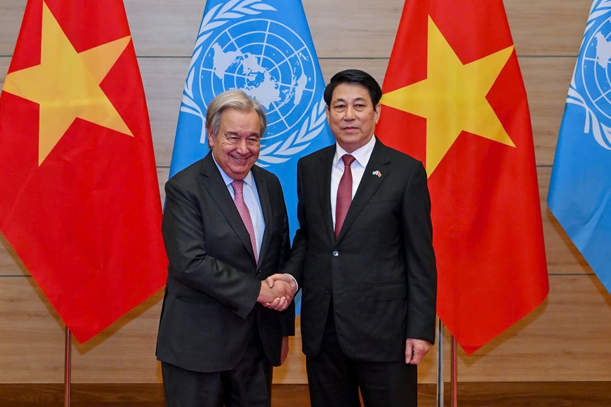 Nhân dịp này, thay mặt Nhà nước và nhân dân Việt Nam, Chủ tịch nước một lần nữa cảm ơn sâu sắc Liên hợp quốc và ngài Tổng Thư ký về sự ủng hộ và đồng hành với Việt Nam suốt những năm tháng qua; đồng thời tin tưởng rằng, mặc dù phía trước còn nhiều khó khăn, nhưng Liên hợp quốc sẽ tiếp tục là ngọn cờ của hòa bình và hợp tác quốc tế, truyền cảm hứng cho các quốc gia cùng nhau đoàn kết, vượt qua mọi thách thức để tiếp tục tiến lên.